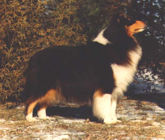 "Glad Rags" was an extremely typey tricolor with a beautiful head and eye,and great showmanship. "Glad Rags" was a D.C.& S.S.A. Best of Breed winner and won the Open Tricolor Bitch class at the C.C.A. National. She finished in the U.S. with Specialty majors. Some treasured cannot be measured...."GLAD RAGS" WAS ONE OF THEM.